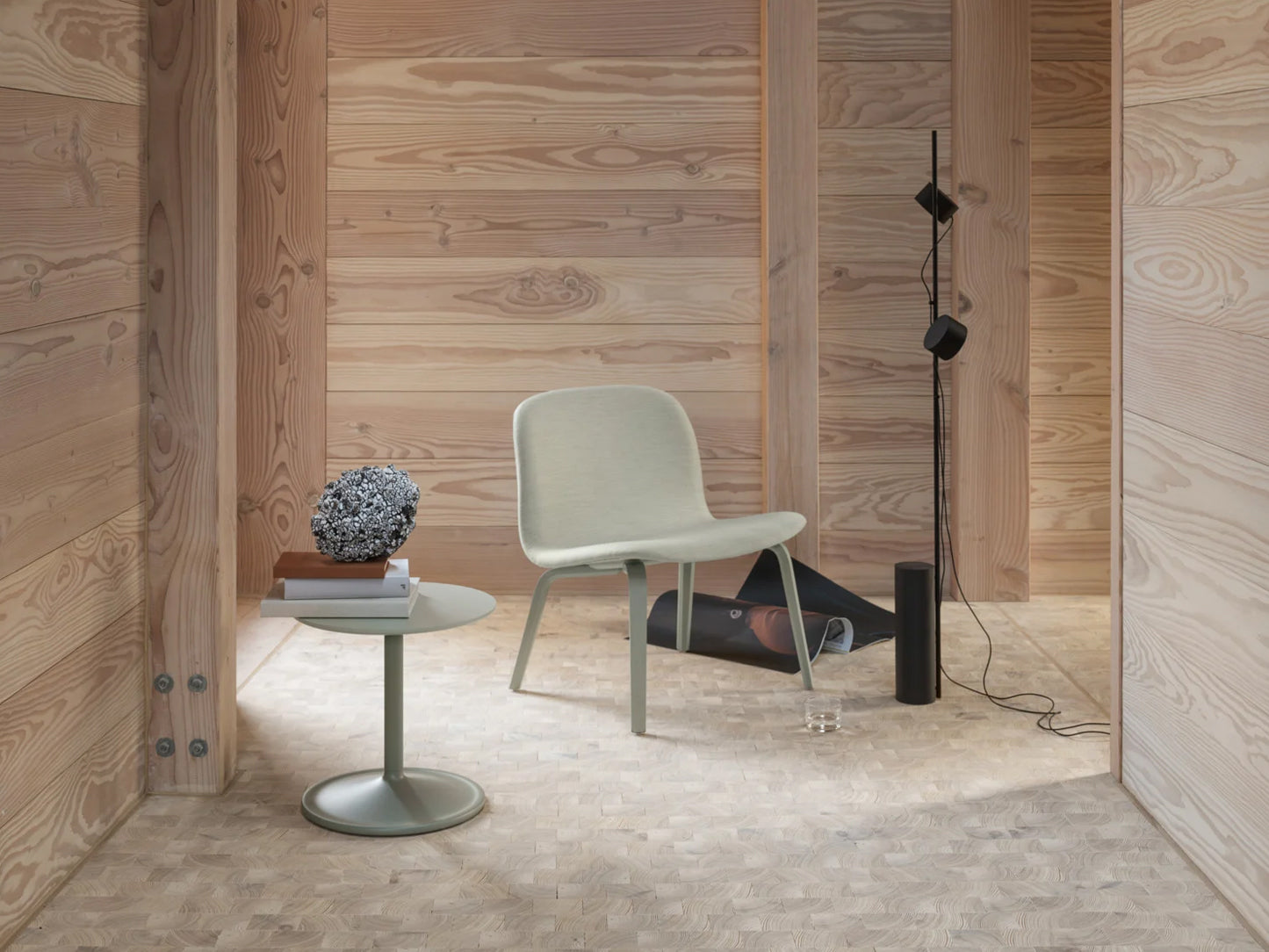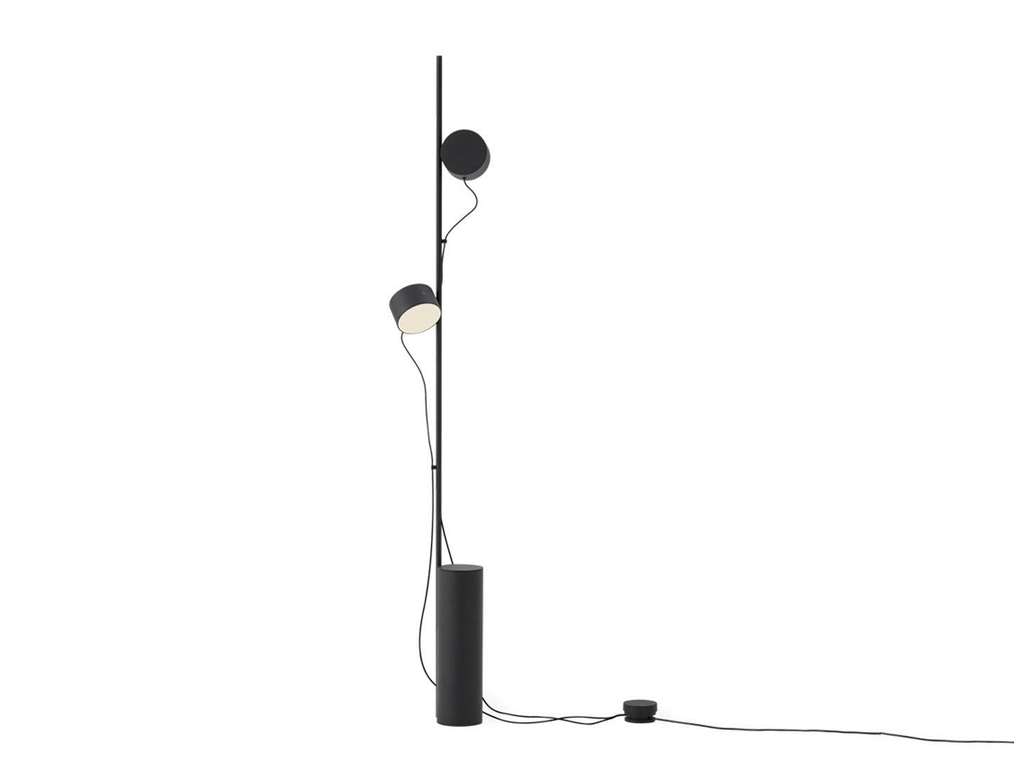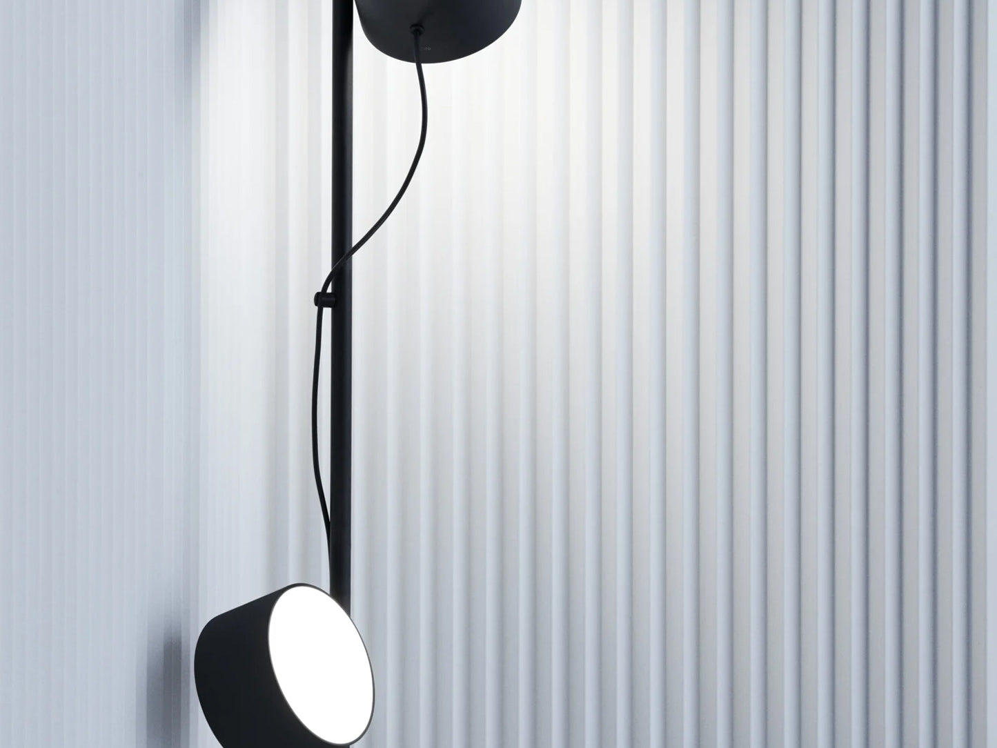 Sockel aus pulverbeschichtetem Stahl. Leuchtkörper aus pulverbeschichtetem Magnesium mit Silikonkabel und opalem Acryldiffusor. Kabelabgänge aus pulverbeschichtetem Kunststoff mit Magnet. Stromanschluss aus pulverbeschichtetem Kunststoff mit PVC-Kabel.