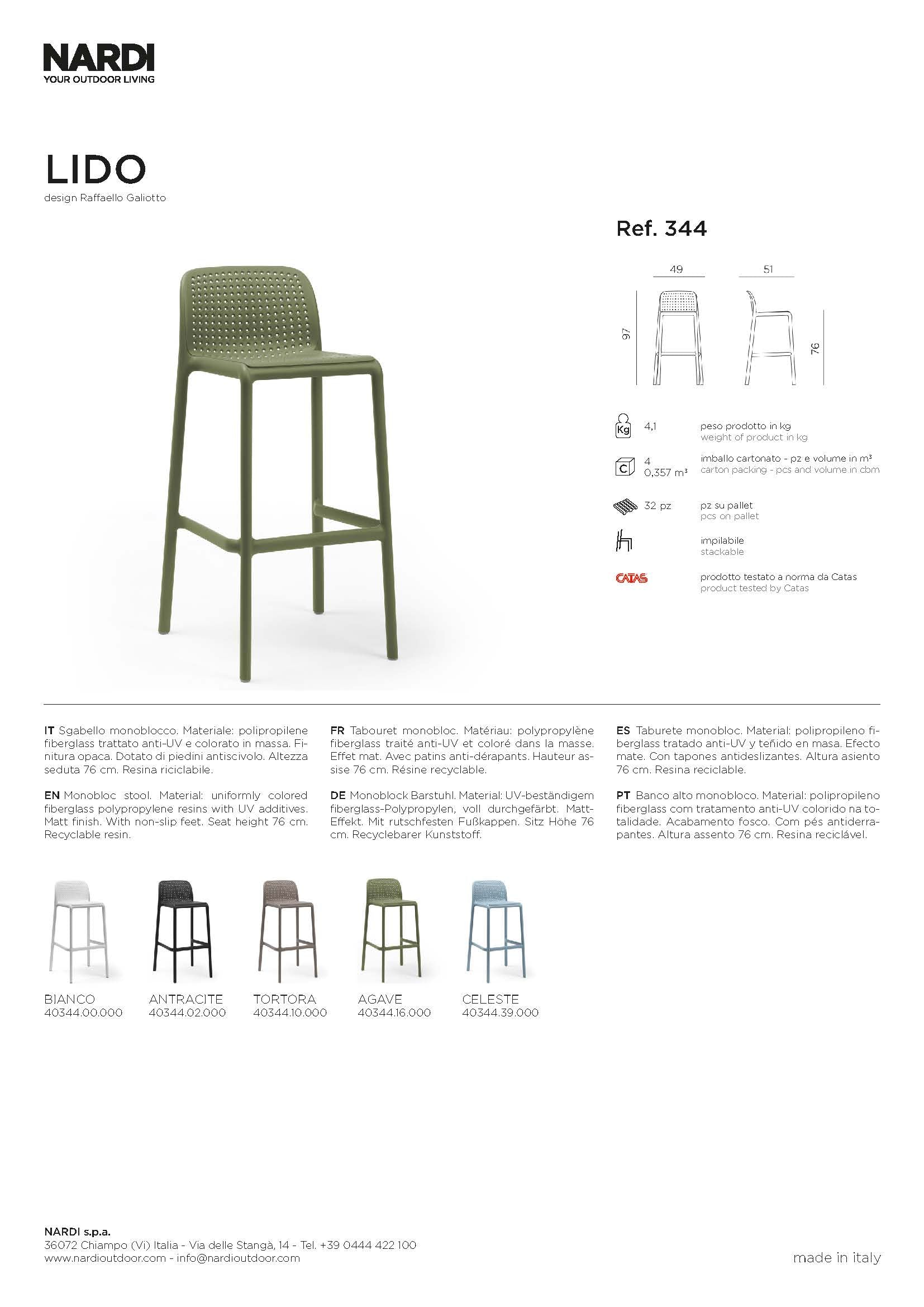 Der Lido ist ein eleganter, moderner Monoblock-Stuhl ohne Armlehnen aus dem Hause Nardi, ideal für den Einsatz im Garten, auf der Terrasse oder in der Gastronomie. Seine perforierte Rückenlehne verleiht ihm Leichtigkeit und sorgt gleichzeitig für eine gute Belüftung – perfekt für warme Sommertage. Stapelbar, wetterfest und pflegeleicht eignet sich der Lido hervorragend für den Outdoor-Einsatz mit Stil.