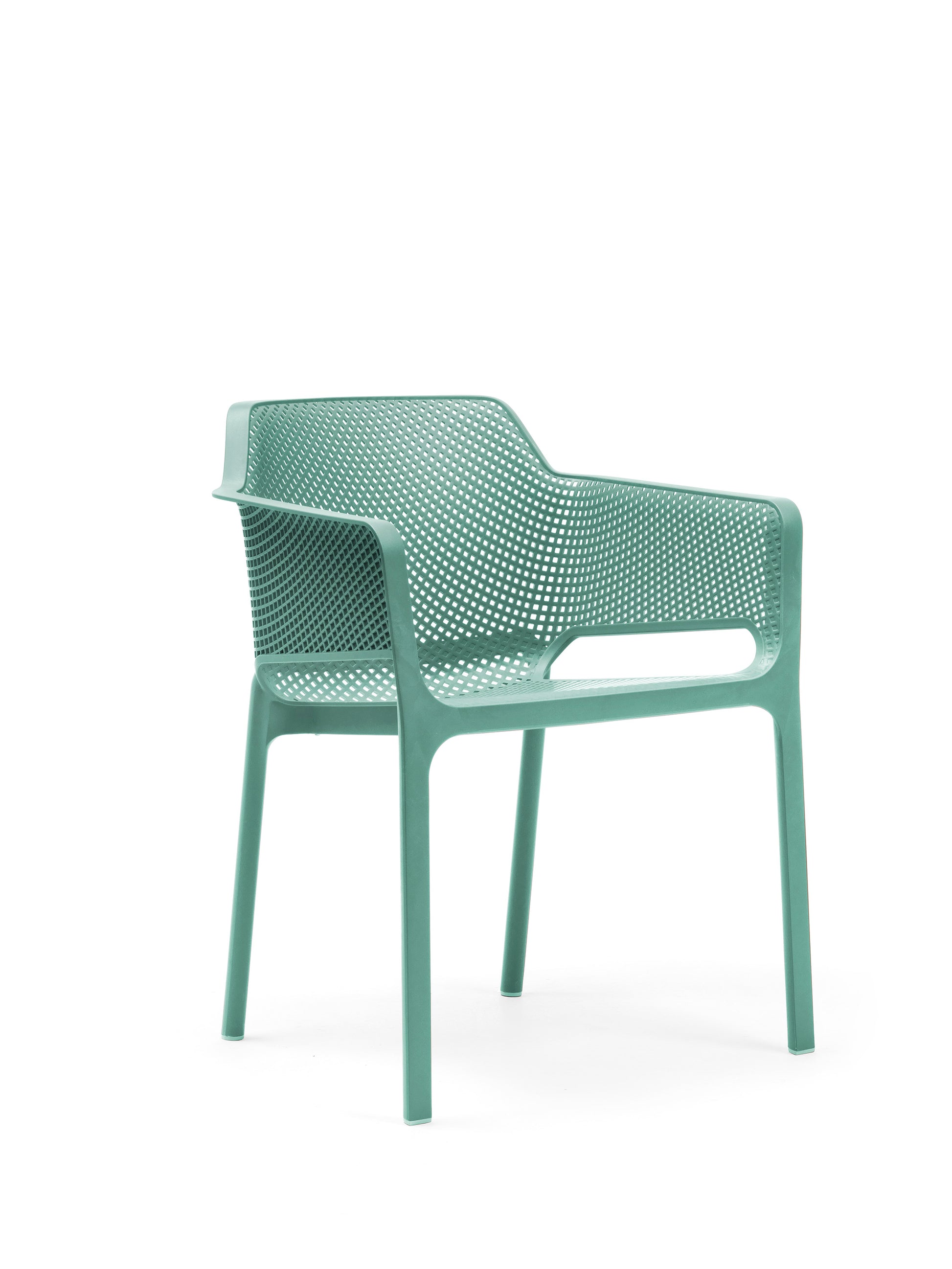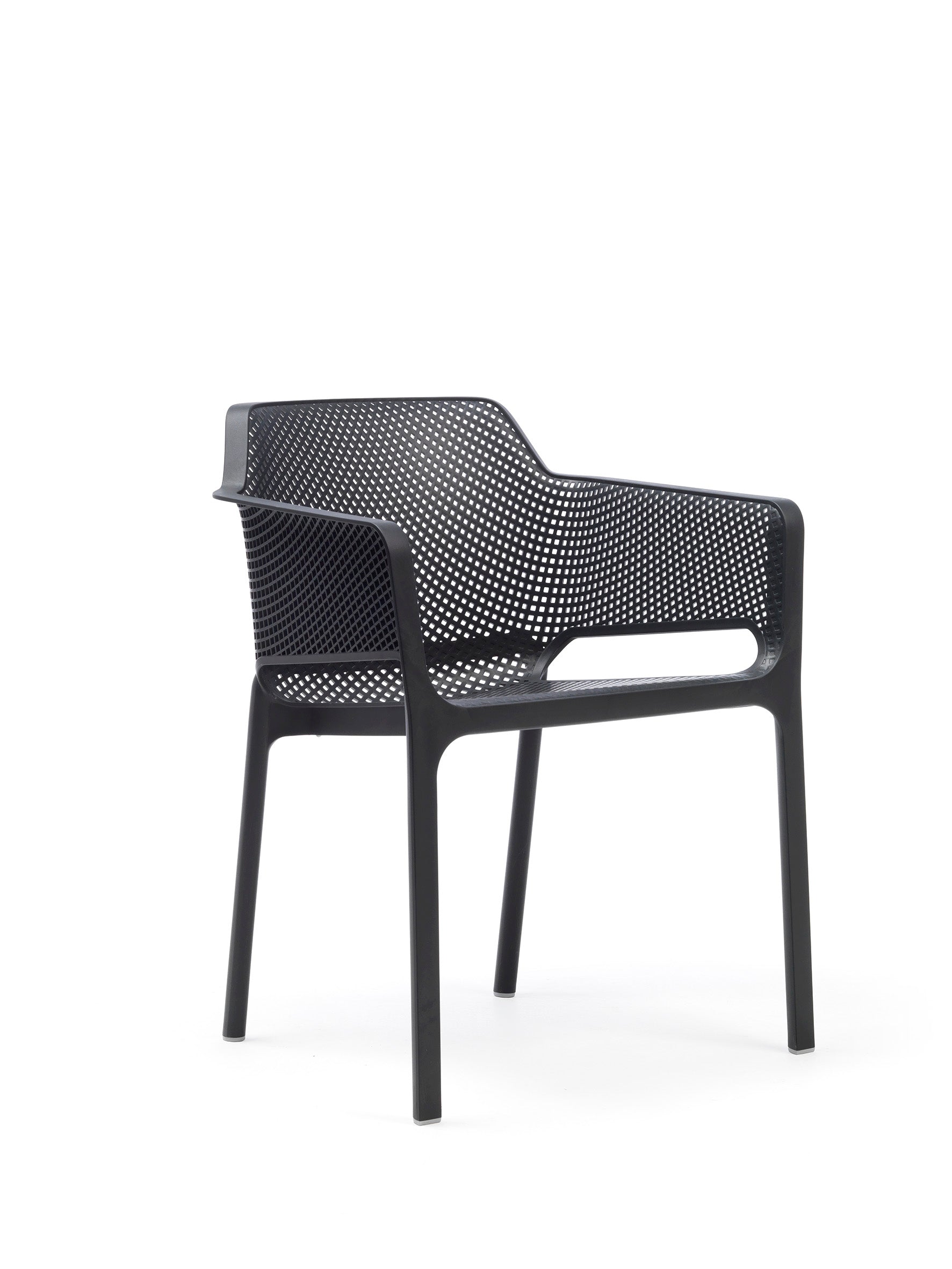 Der Net Sessel besteht aus hochwertigem, UV-beständigem fiberglass-verstärktem Polypropylen, voll durchgefärbt mit edlem Matt-Effekt. Die rutschfesten Fußkappen sorgen für sicheren Stand. Das Material ist nicht nur langlebig und wetterfest, sondern auch vollständig recyclebar – ein Pluspunkt für umweltbewusstes Einrichten.