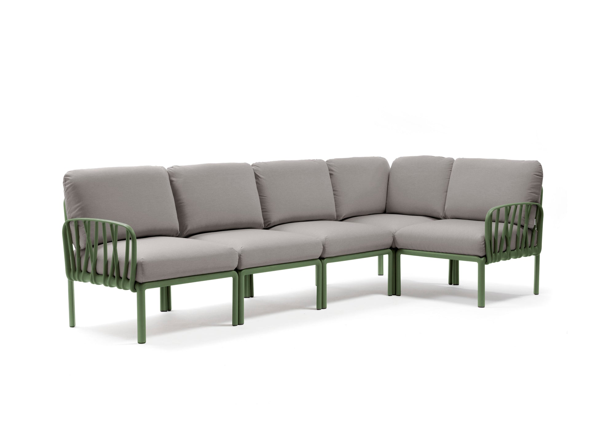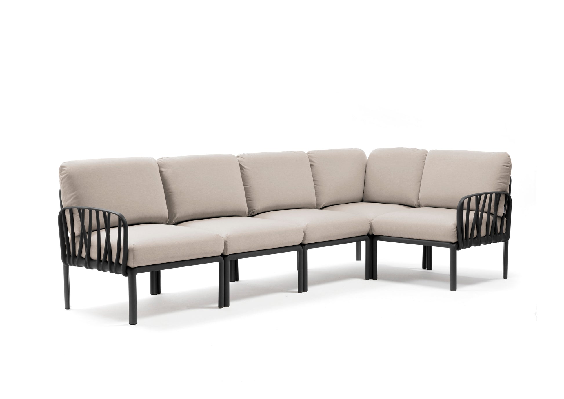 Das Komodo 5 ist ein fertig konfiguriertes, 5-sitziges Outdoor-Loungesofa aus der modularen Komodo-Serie von Nardi. Es besteht aus fünf miteinander kombinierbaren Sitzmodulen mit Rückenlehnen und Armlehnen und bietet maximale Gestaltungsfreiheit. Die modulare Bauweise erlaubt verschiedene Aufbauvarianten – als großzügige Ecklounge, lange Sitzbank oder offene U-Form. Das moderne Design und der hohe Sitzkomfort machen es zur idealen Lösung für stilvolle Garten-, Terrassen- oder Poolbereiche.