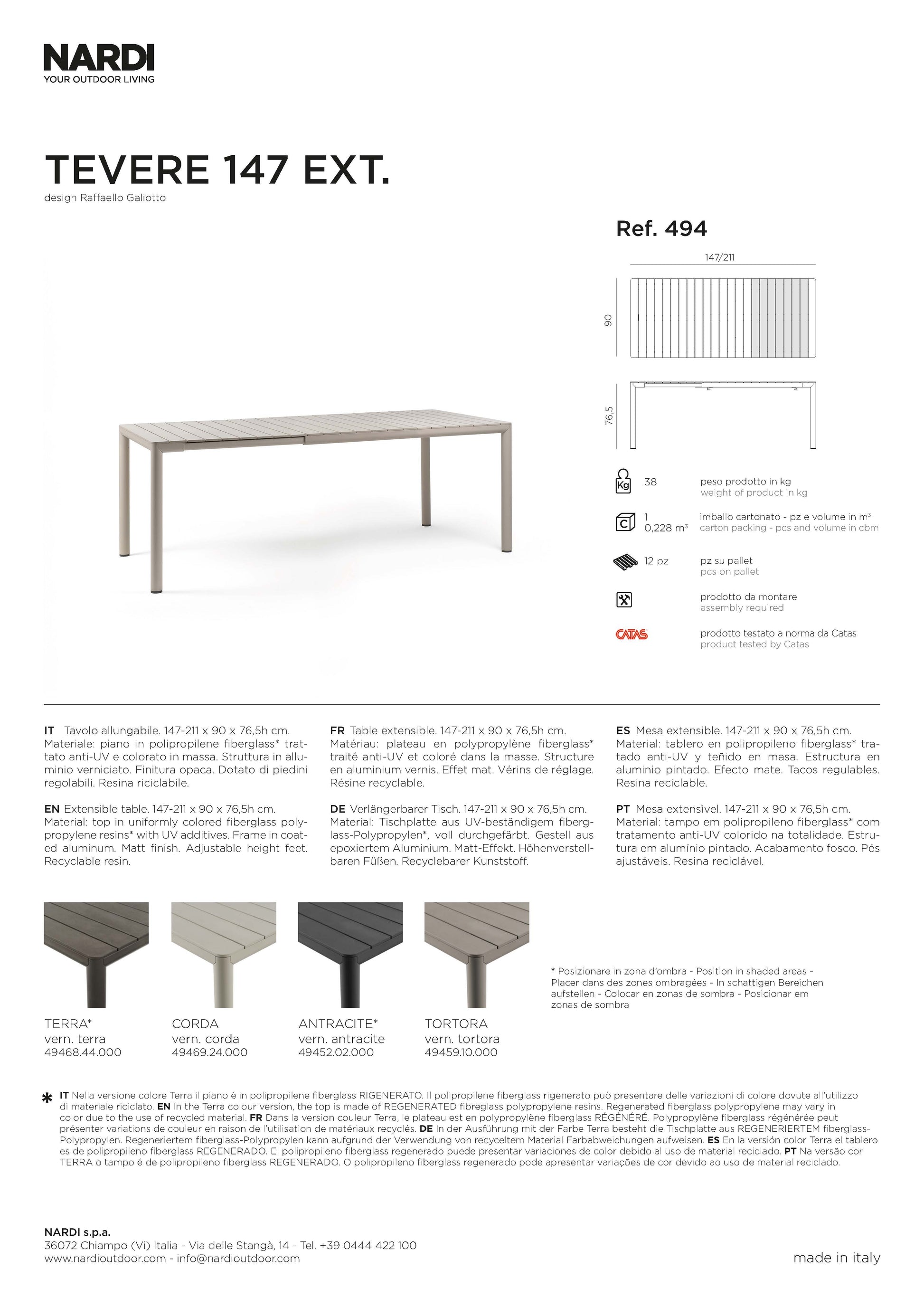 Nardi Tevere 147 Tisch - Ausziehbar